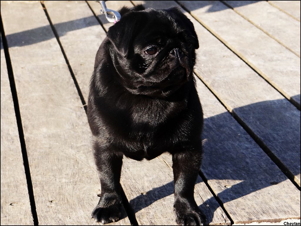 Mouvement CorrectTête avec un bon profilRides crâne pourraient être plus marquéesBonne attache oreillesExcellent oeilBonne forme de ridesMenton largeBon prognathismeBonne attache d'épauleOssature correcteLigne de dos solideSujet un peu enrobéBonne attache de queueMusculature juste