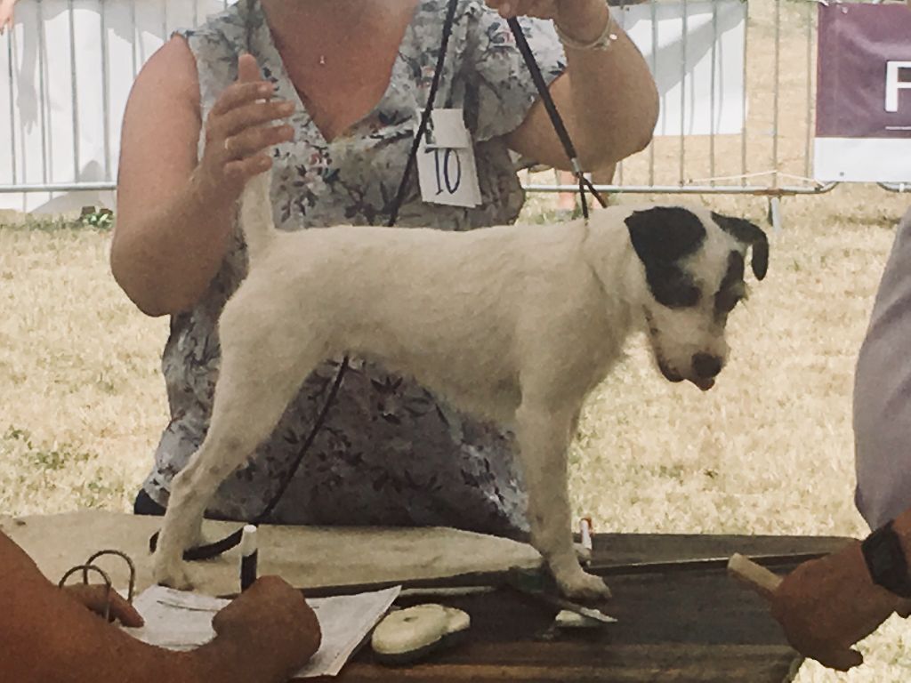 joli modèle tricolore, poil dur, Exc tête, oreilles ,exc aplombs, exc présentation, chienne vive a revoir
