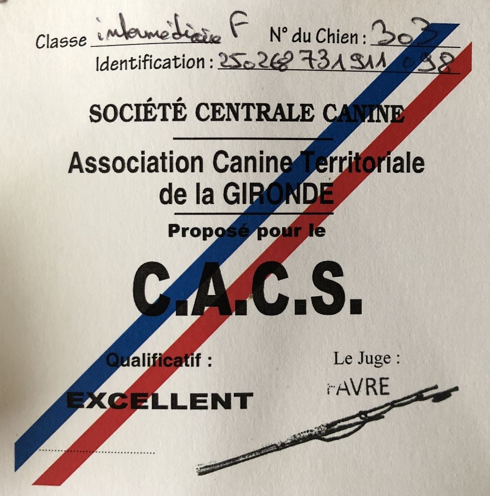 - 1er excellent CACS Meilleur de Race Classe intermédiaire
