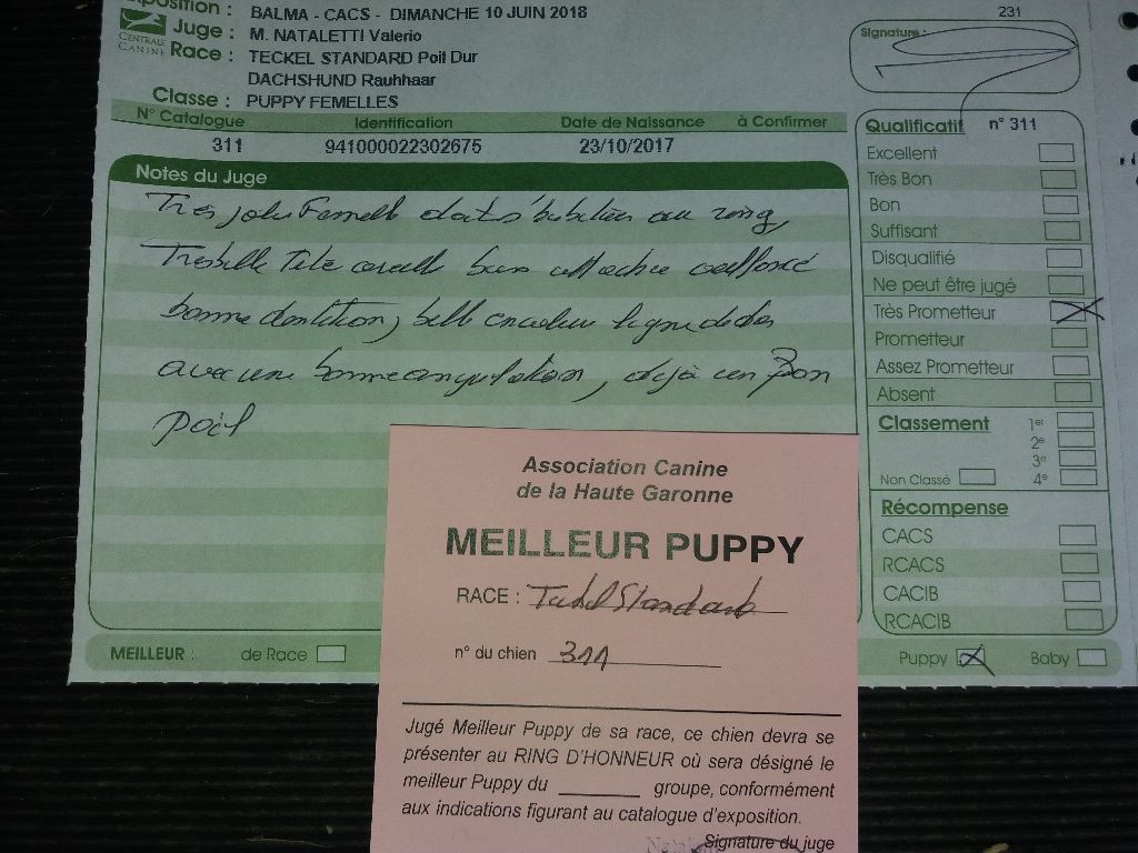 Exposition Canine Nationale de Balma (31) le 10.06.18 : Classe Puppy - Très Prometteur - Meilleur Puppy - B.O.G.