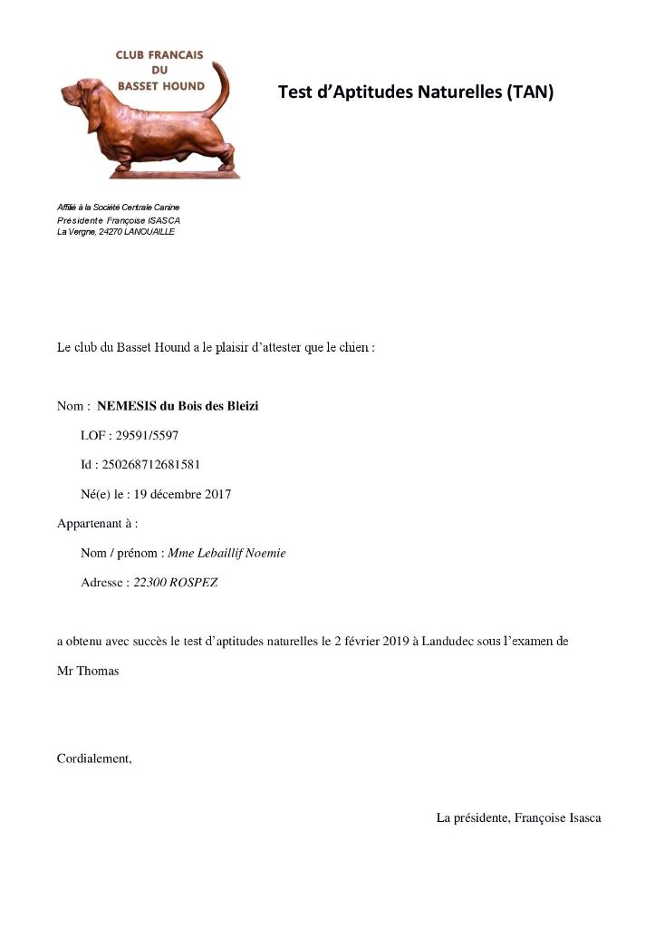 Manifestion : TEST D'APTITUDES NATURELLES - Juge : M.THOMAS Gérard
