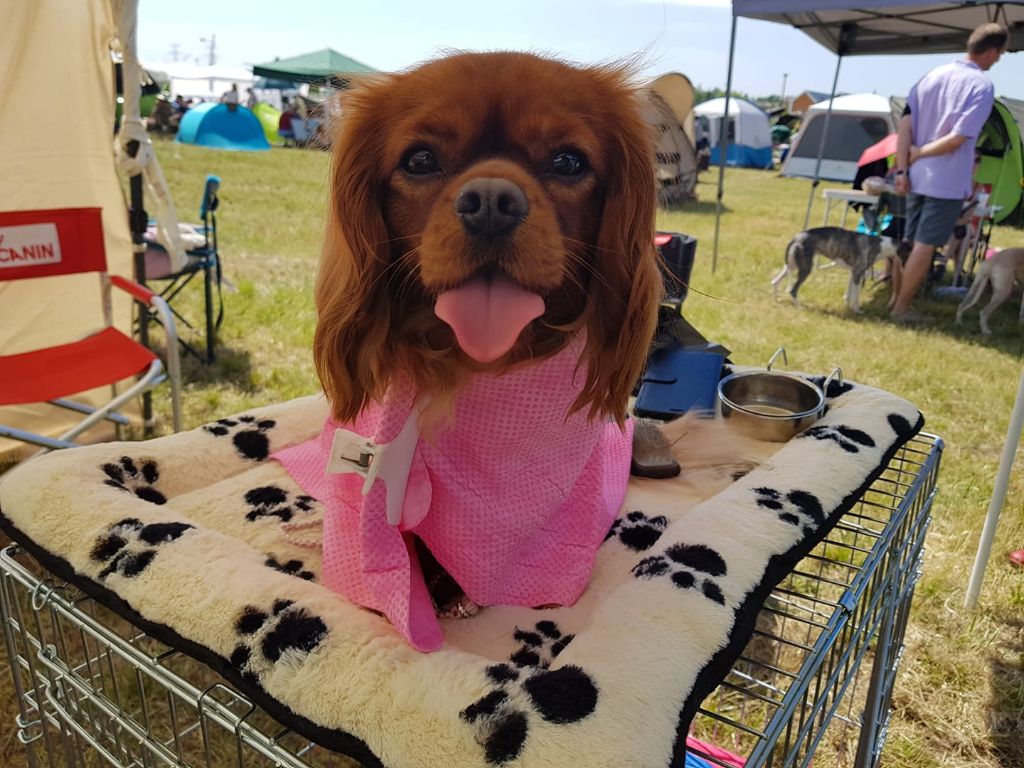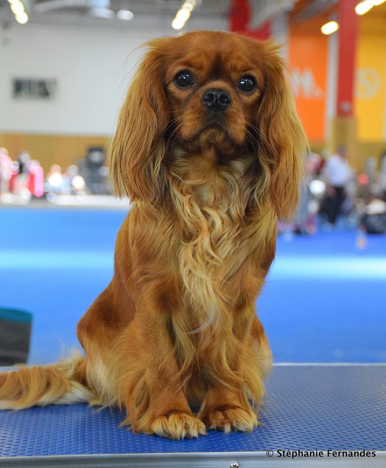 Excellent crâne, Bon port d'oreille, excellent stop et front, excellent yeux, forme et couleur, excellent rapport crane et chanfrein.Excellente dentition, excellent antérieur, excellentes côtes et poitrine.Dos un peu souple, croupe légèrement avalé et fouet un peut bas.Arrière main un peut droite, allure régulière.