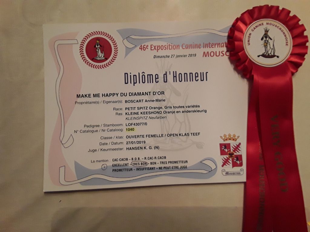 Chien Spitz allemand Make me happy du Diamant d'Or