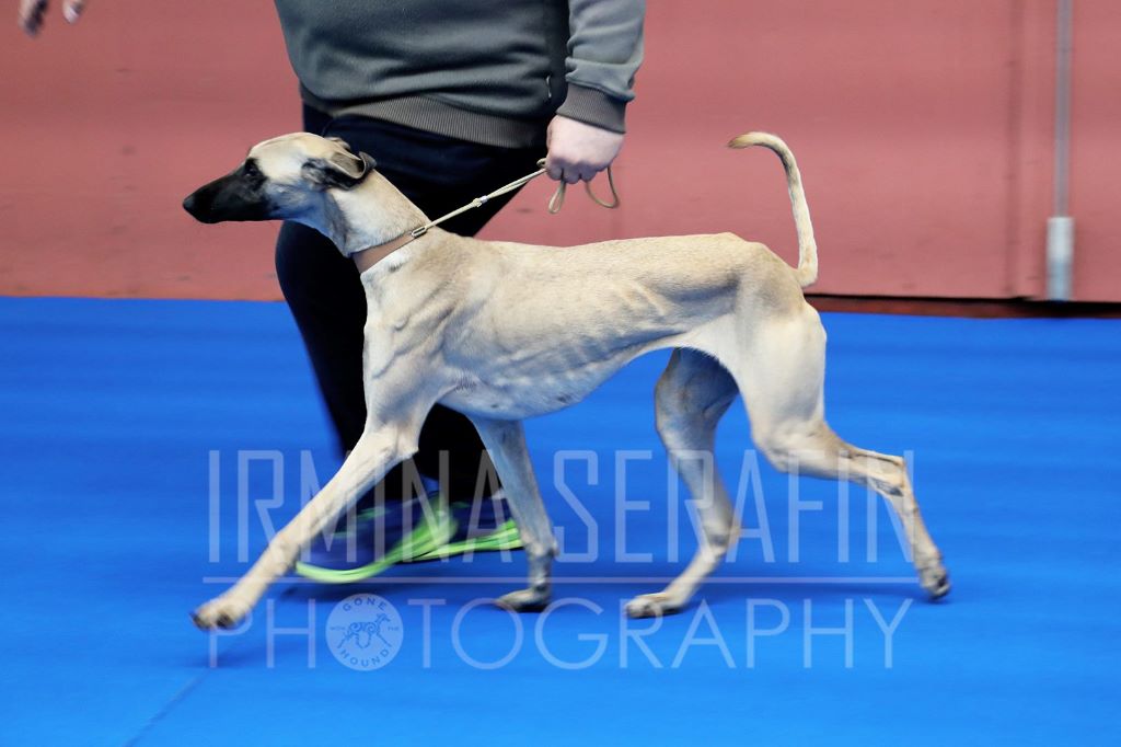 2 ans , très joli sujet , très féminine , typique de la race Exc arrière main, devant , tête très féminine , musculature, fouet , ?il , dessus , dessous.Sable charbonné masque noir , fouet gai aux allures , tb oreilles , dcc Petite pastille sable très claire Ne se livre pas en A/R exc allures latérales