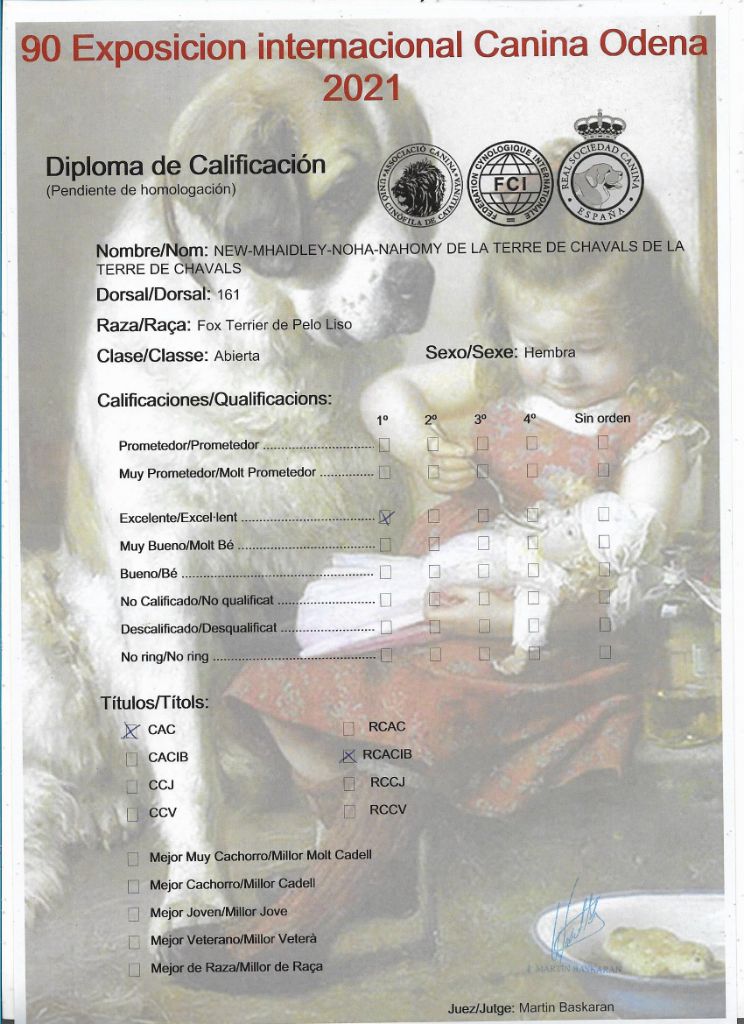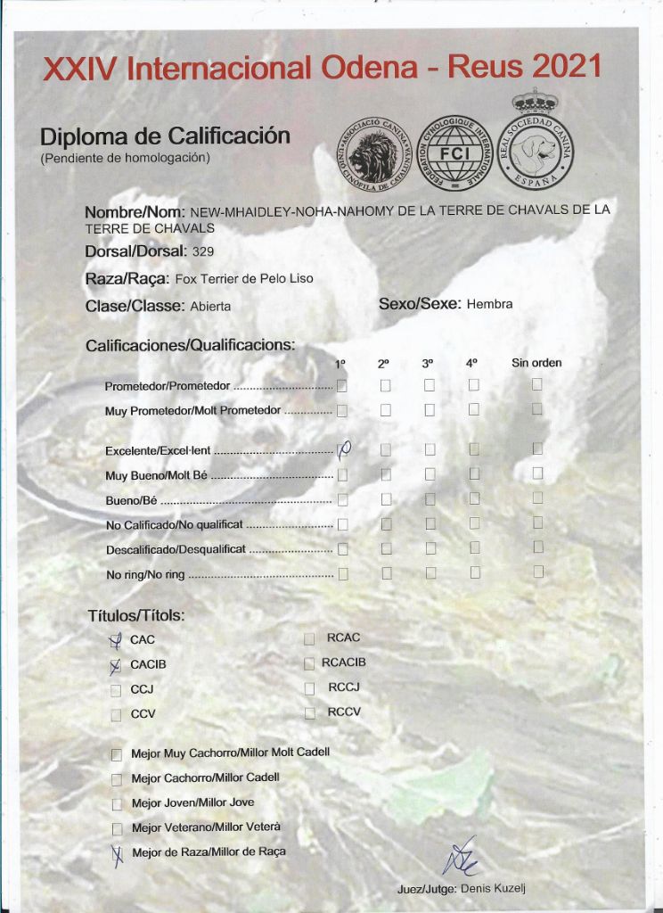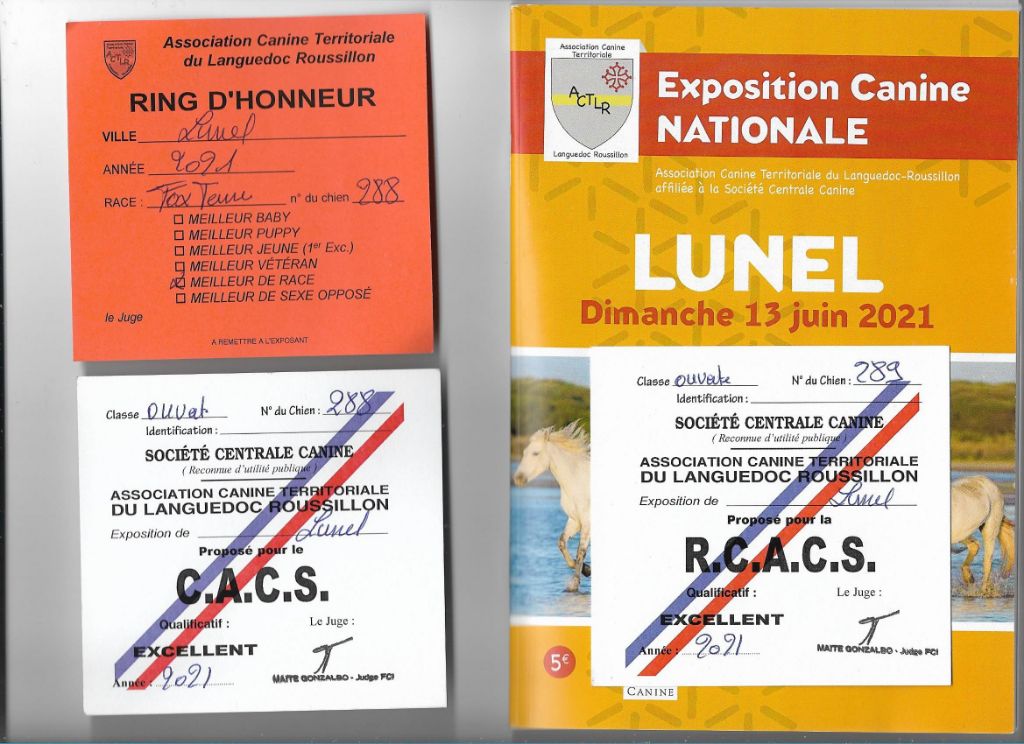 - 1ER EXCELLENT MEILLEURE JEUNE ET MEILLEURE TERRIER JEUNE SUR LE RING D'HONNEUR.