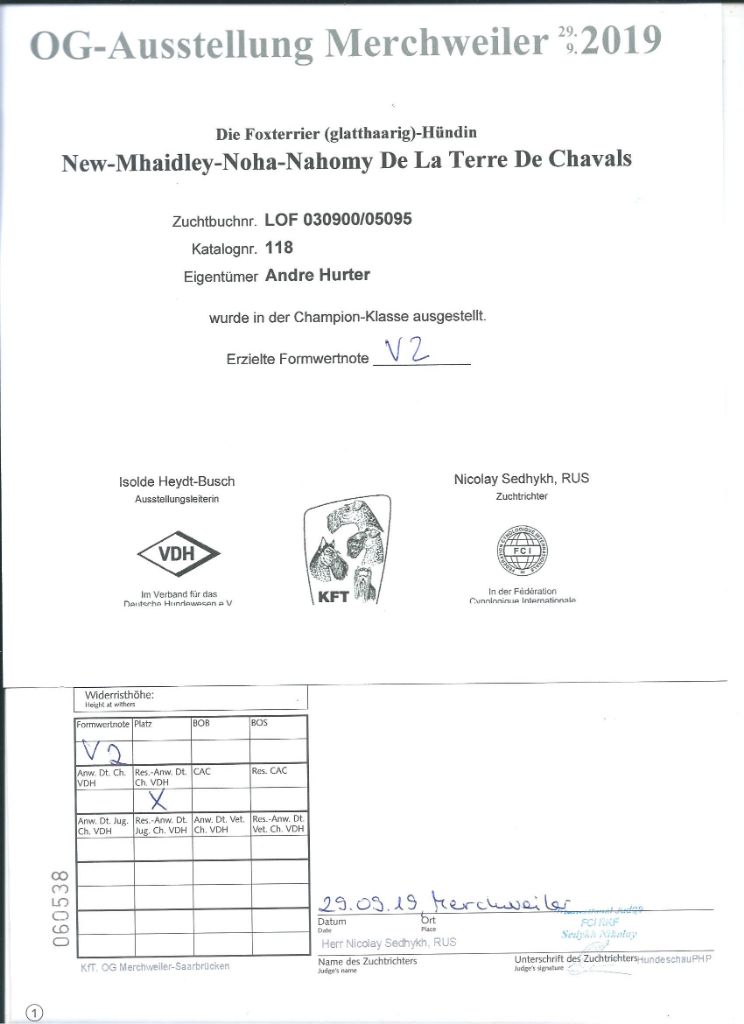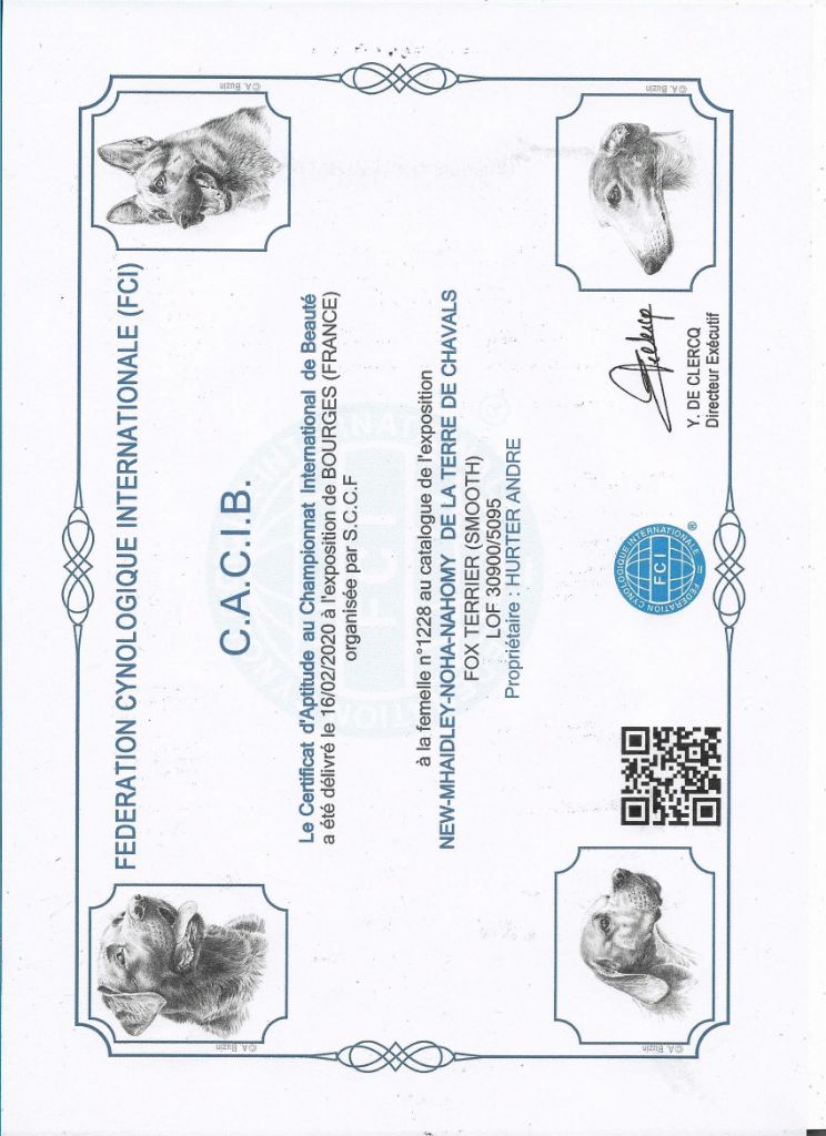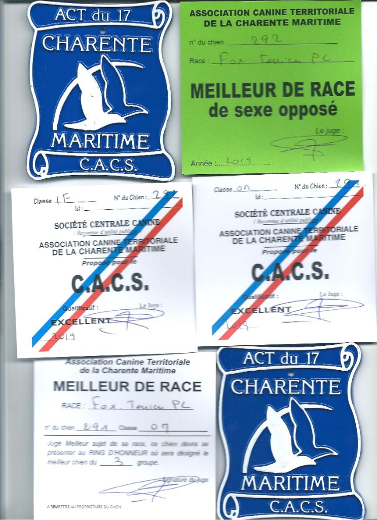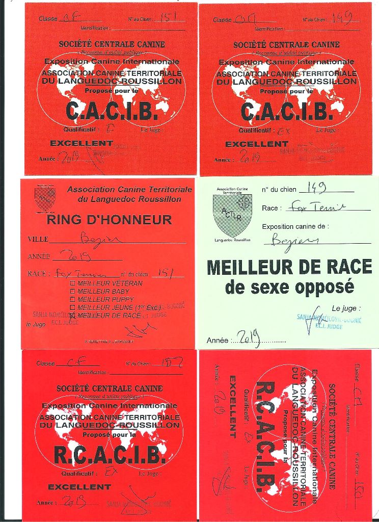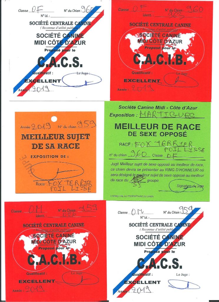 CLASSEE 4ème EXCELLENT A LA NATIONALE D'ELEVAGE FOX TERRIERS POIL LISSE 2019.