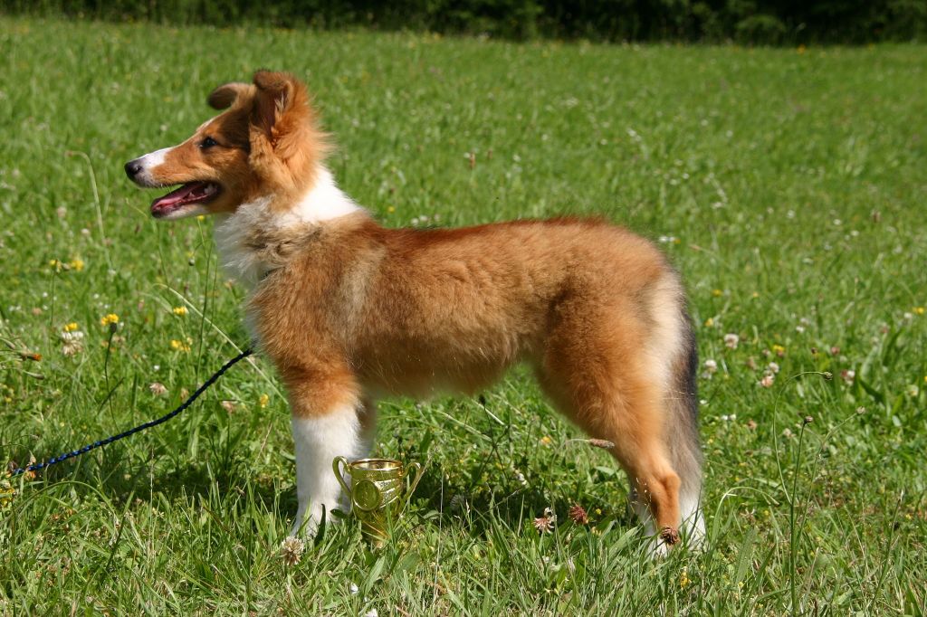 Sujet bien décontracté Morphologie d'ensemble correct avec une expression douceExcellent crâne Bonne dentitionÉpaule correcteReins un peu long Ossature bonneFerme un peu les anterieursSujet bien présenté
