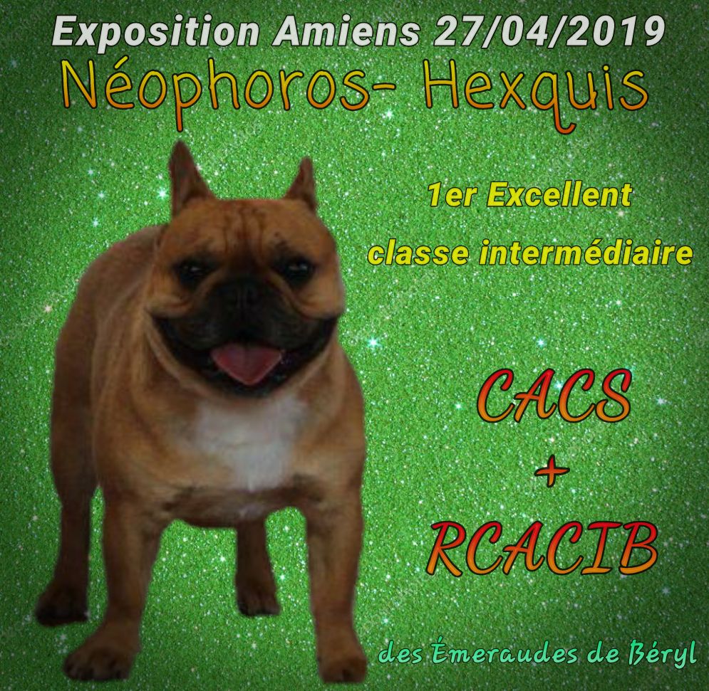 De couleur fauve rouge, Néophoros-Hexquis a une superbe tête masculine avec des yeux foncés et un excellent port d'oreilles.
