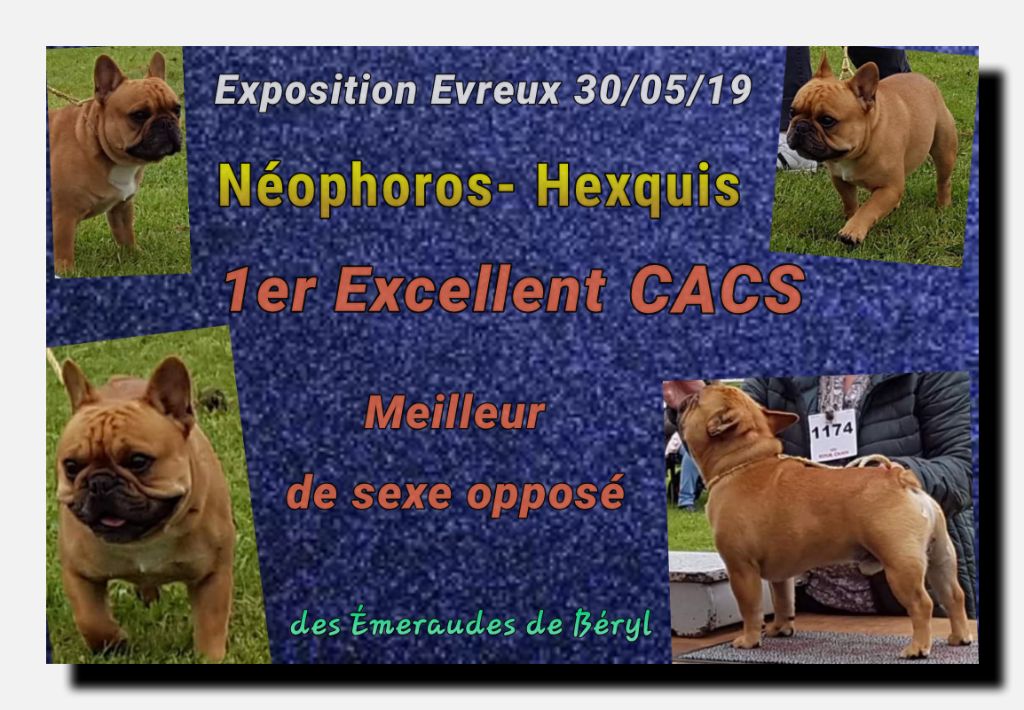 Néophoros-Hexquis est en contrat d'élevage ; il ne vit donc pas chez moi mais chez une particulière près de Rouen. Au fil des mois qui passent, je suis son évolution et je conforte mon idée que Néophoros n'aurait pas pu tomber dans une meilleure famille !!