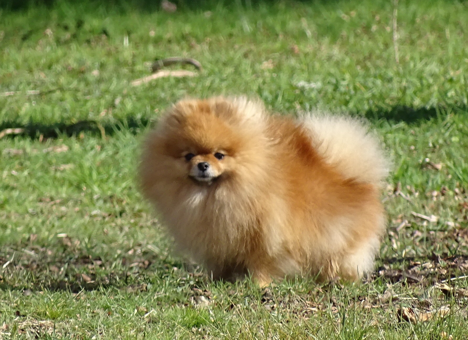 Chien Spitz allemand Marquise pom pom Des vifs d'or