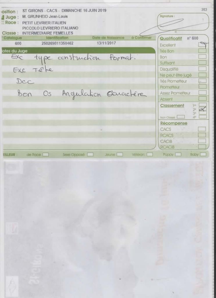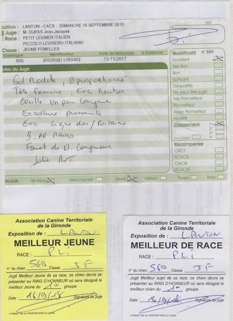 - 1er exc meilleur jeune meilleur de race 3emeBOG