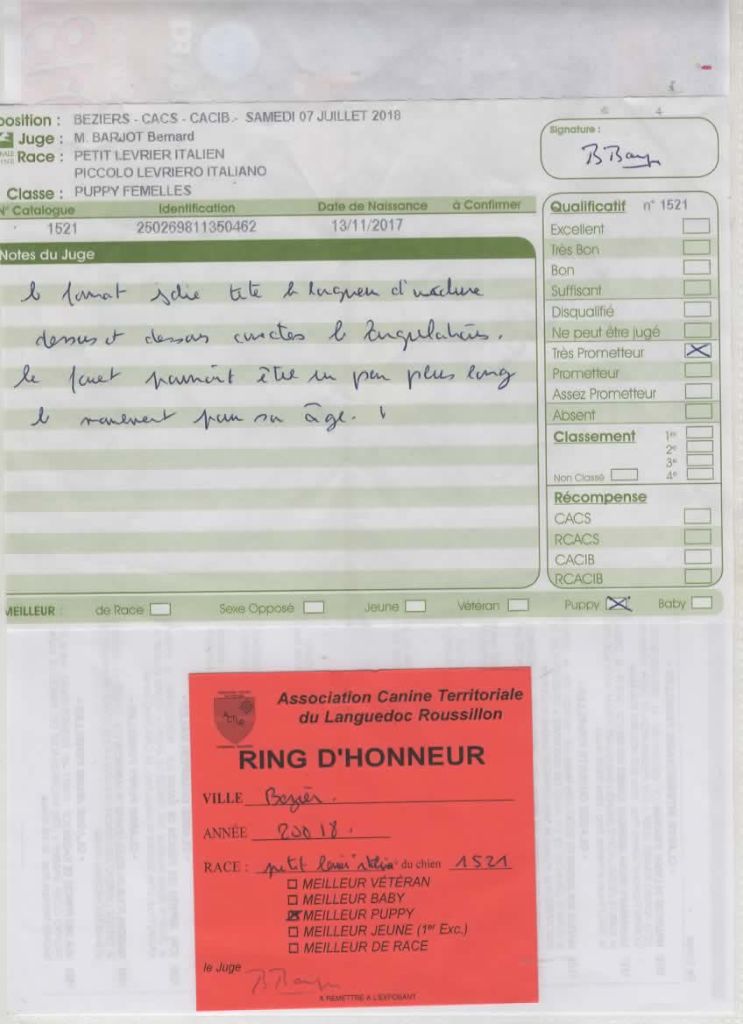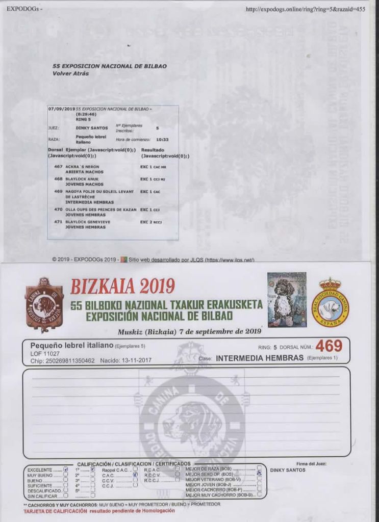 Manifestion : SPECIALE LEVRIERS - Juge : VEIGA MARIA GABRIELA (PT)