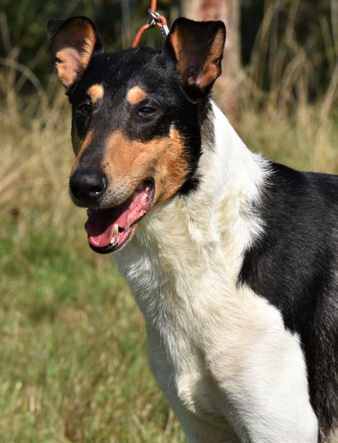 TRES BEAU MALE TRICOLORE DE 6 ANSSUPERBE TETE ET EXPRESSION AVEC UN STOP LEGER ET BIEN PLACEEXCELLENTES ANGULATIONS ET EXCELLENTES OREILLES BIEN PORTEES EXCELLENTE ENCOLURE ET TRES BONNE POITRINEEXCELLENT DOS ET TRES BONNES ANGULATIONS AV ET AREXCELLENTES ALLURES ET FOUET BIEN PORTE