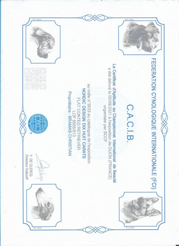 Chien Flat Coated Retriever CH. Dix-Huit Carats Nordic design