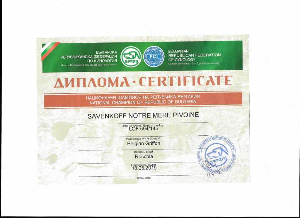 Chien Griffon belge CH. savenkoff Notre mère pivoine