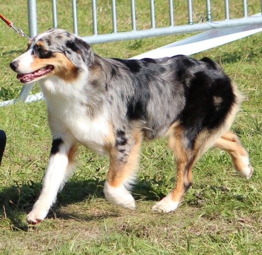 Bon format, épaule un peu droite, oreilles bien portées, angulation pourrait être plus marqué à l'arrière, Marche bien, Ligne de dessus correcte, Juste croupe un peu avalées