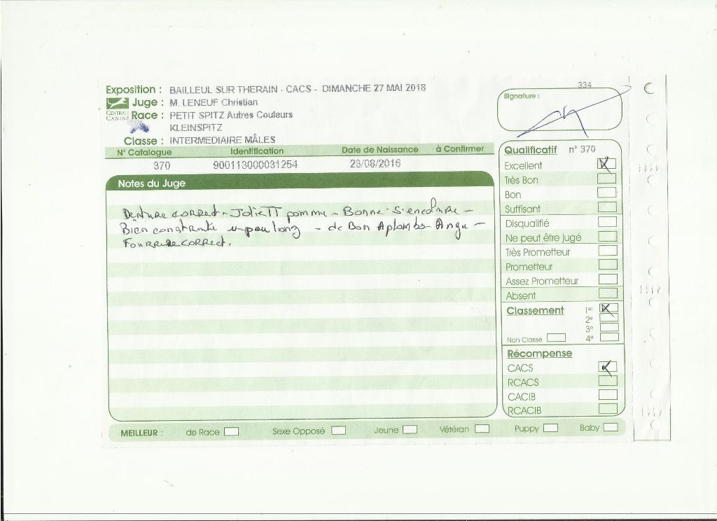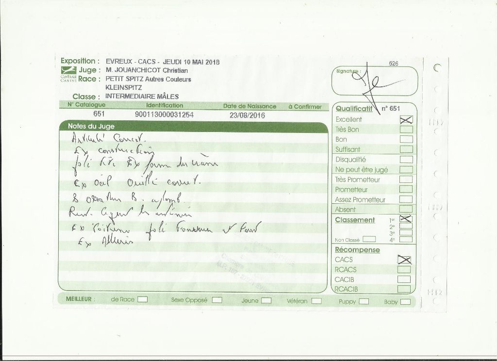 - 1er - excellent - CACS - classe intermédiaire