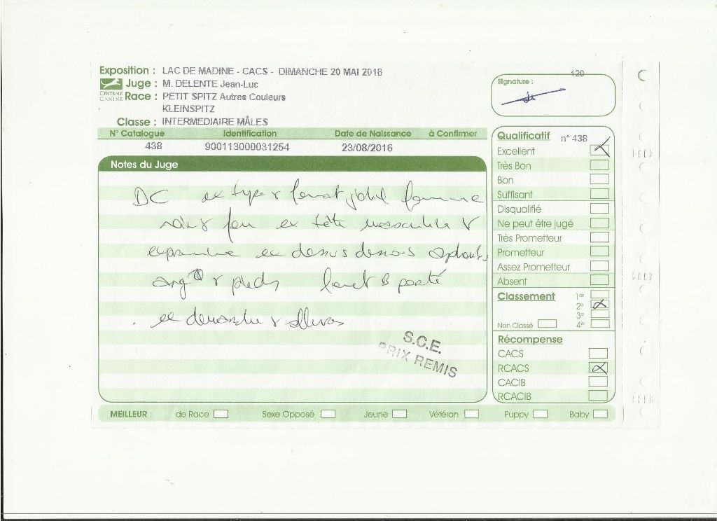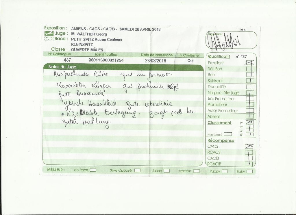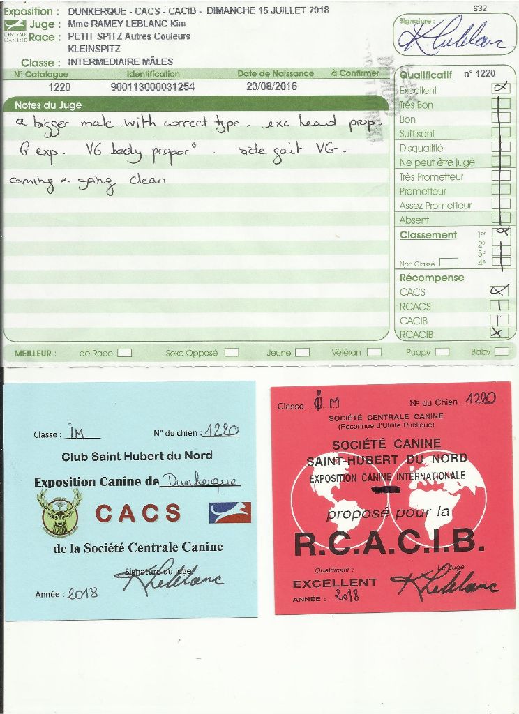 - 1er - excellent - classe intermédiaire - CACS - RCACIB