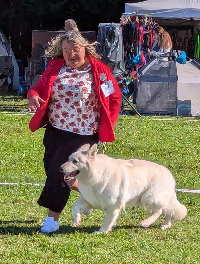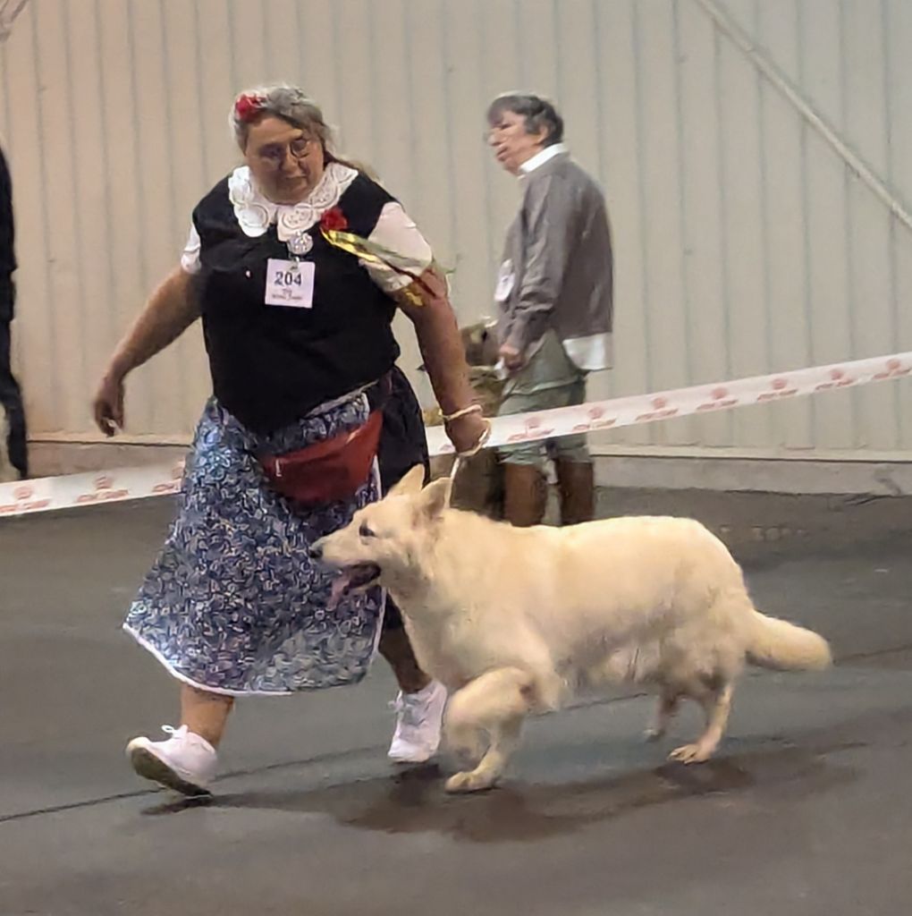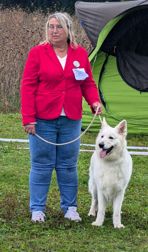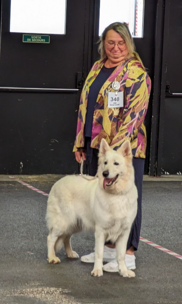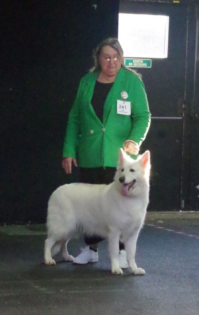 CLASSE OUVERTEJOLIE CHIENNE - DCC - TRES JOLIE TÊTE - EXC CRÂNE, STOP, CHANFREIN - OREILLES BIEN IMPLANTEES - YEUX BIEN EXPRESSIFS - EXC PROPORTION ET CONSTRUCTION - DOS FERME ET CROUPE LONGUE - EXC APLOMBS AVANT ET ARRIERE - EXC OSSATURE - CHIENNE QUI SE FAIT PLAISIR AUX ALLURES - EXC CARACTERE3e EXCELLENT