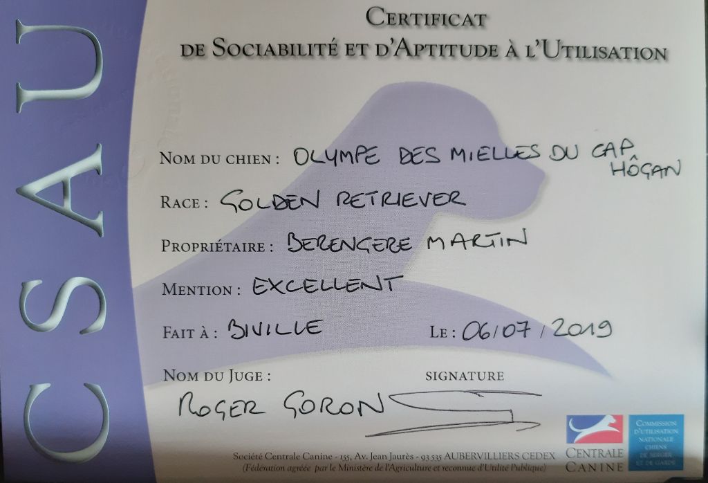 Chien Golden Retriever Olympe des Mielles du Cap Hôgan