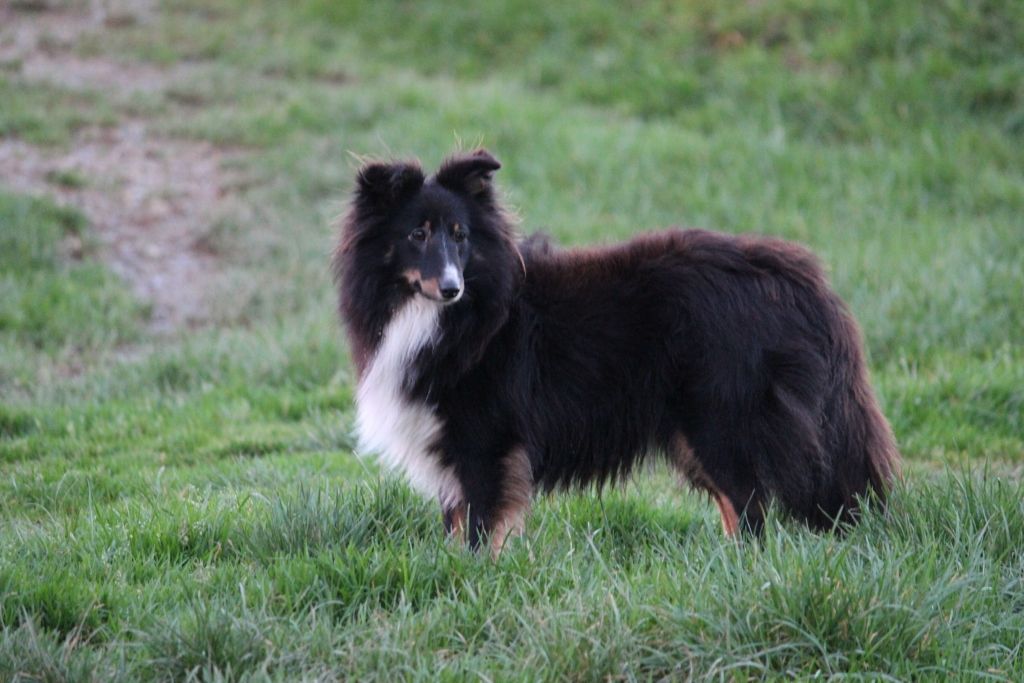 Jolie tête dans l'ensemble, bien proportionnée.Bien construite, belle ossature, en léger surpoids.Excellents applombs avant, belle fourrure.Excellente présentation, excellent carcatère.marche bien