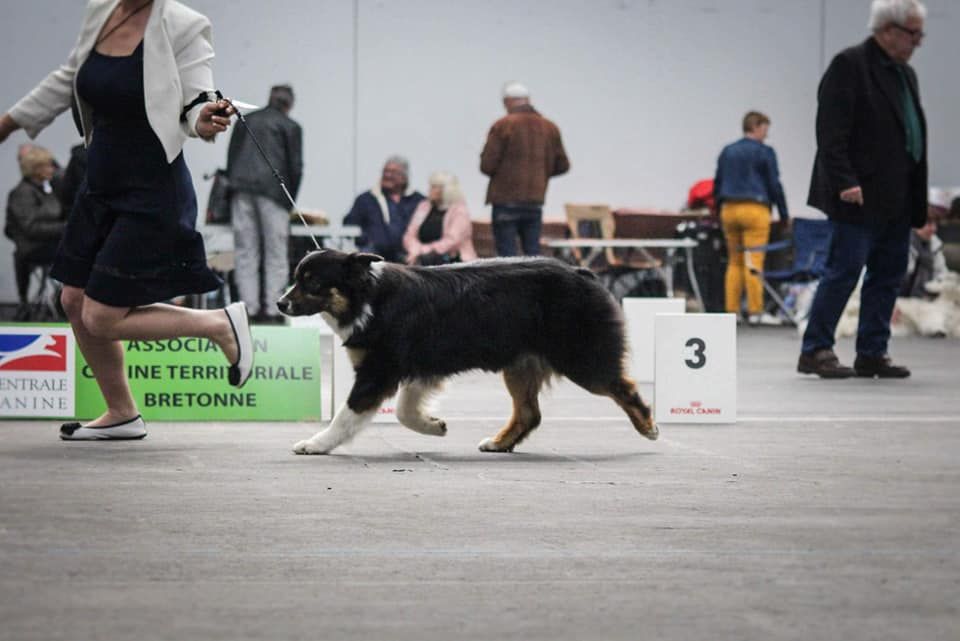 femelle bien proportionnée , jolie tête, exc dessus, très bonne poitrine qui peut encore descendre , très bonne angulation AV et AR, exc mouvement