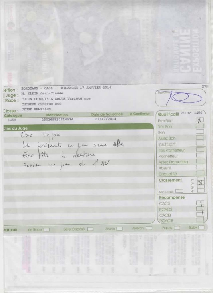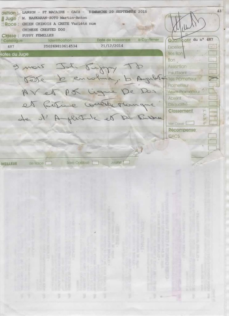 Chien Chien chinois à crête Julliatta fhuhy du soleil levant de Lastrèche