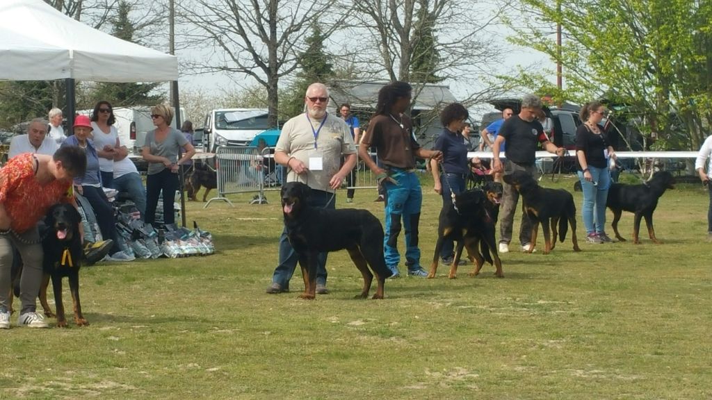 EXCELLENT EN MORPHOLOGIE:Tete exc, dents exc, oeil exc, ligne du dessus exc, ligne du dessous exc, membres antérieurs exc, membres postérieurs exc, queue trés bon crochet legerement dévié, poil exc, allures exc,EXCELLENT EN CARACTERECoup de feu 8Baton 8comportement 8