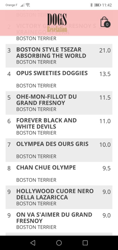 DOG REVELATION Olympea classée 7 eme meilleurs bostons de france