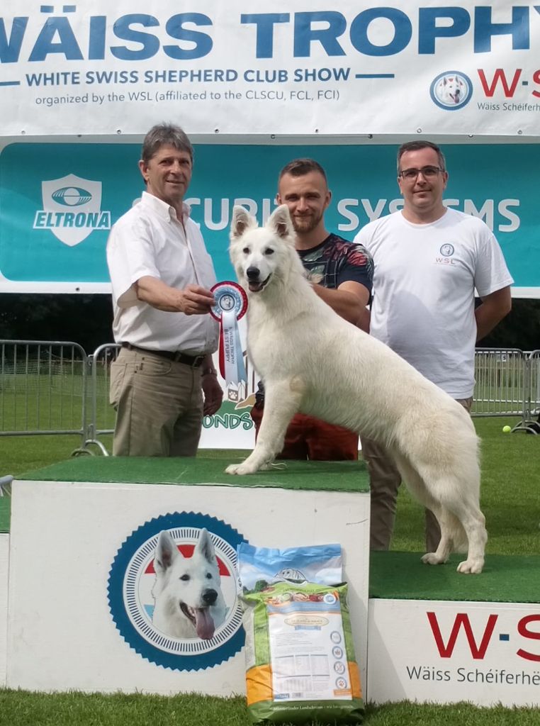 Une nouvelle souche en France grace à son fabuleux Papa le grand Champion FLASH OF TREBONS BERGER BLANC , nous espérons nous démaquer avec notre petite
