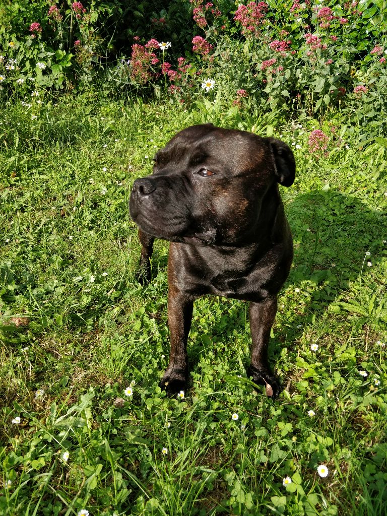 Chien Staffordshire Bull Terrier Machiavel du temple de Gaïa