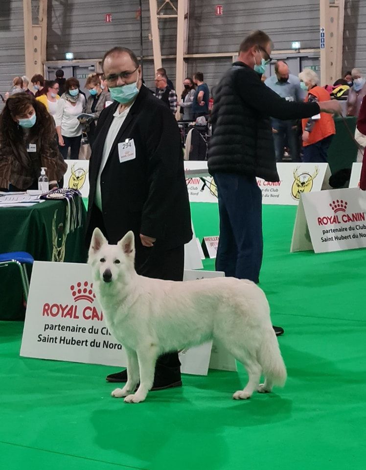 DCC, Très bonne proportion, Oreille bien implanté et très bien portée, Très bonne yeux pigmenté, Bonne proportion, Dos assez tendu, Bonne croupe, Excellente poitrine, Bonne ossature, Mouvement & allure correct