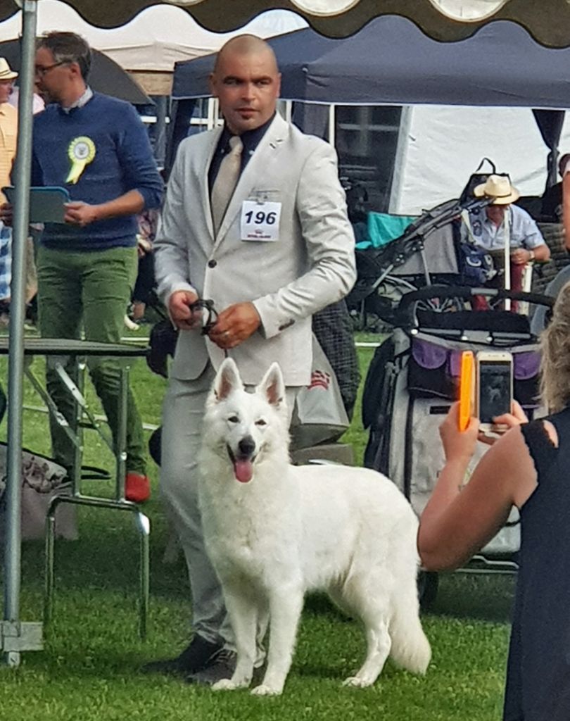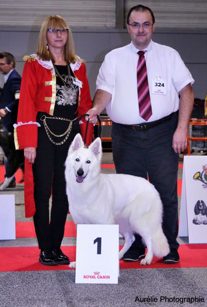 DCC; Bonne taille, puissance et proportion; Bien typé; Tête féminine; Excellent ?il et pigmentation; Très bonne ligne de dessus; Excellent poitrine et angulation; Mouvement souple et régulier; Bonne ampleur