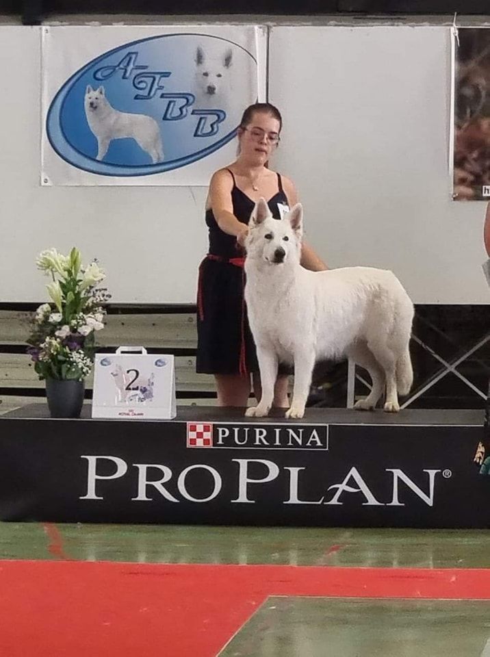DCC, Bonne proportion, Bien typé, Très féminine, ?il correct, Bonne pigmentation, Bon fouet, Bonne ligne de dessus mais la croupe un peu incliné, Bonne angulation, Amplitude correcte, Très dynamique, Mouvement régulier avec une bonne ampleur