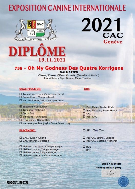 Manifestion : CACIB Championnat de France 2021 - Juge : Mr LEMO Niksa (Croatie)