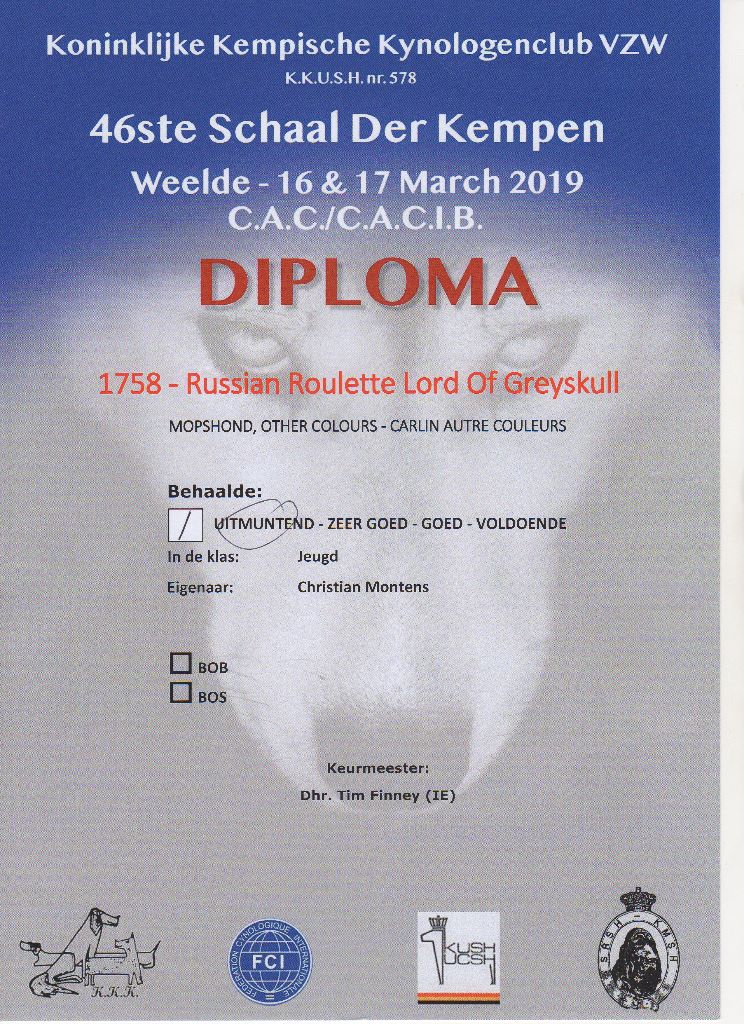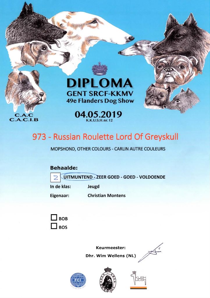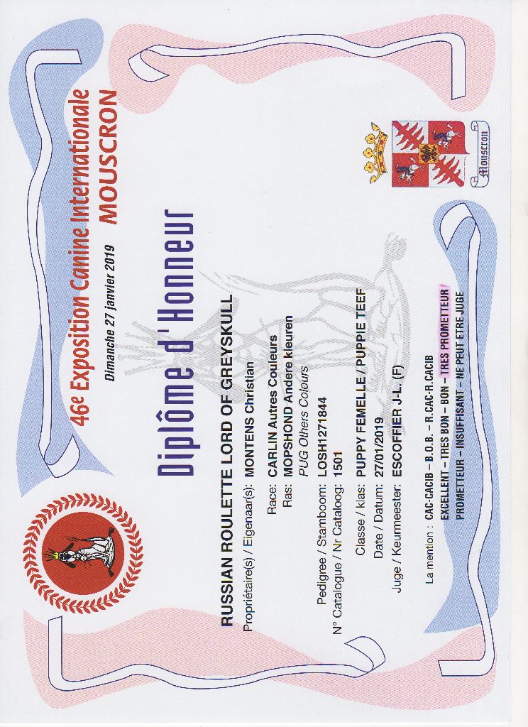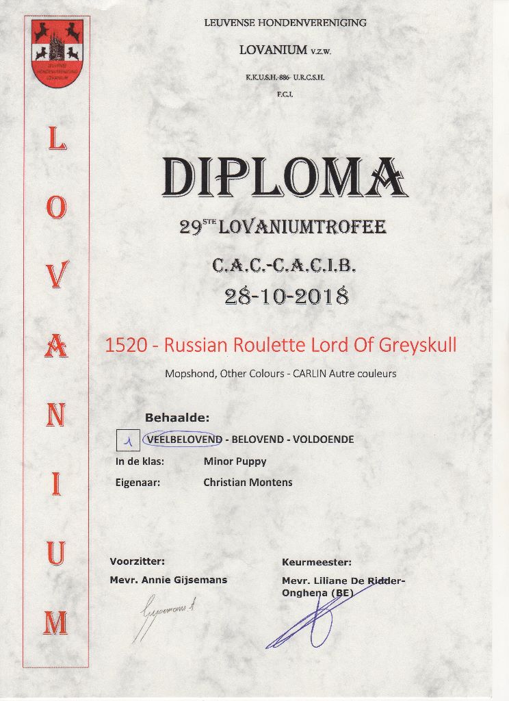 Chien Carlin CH. Russian roulette Lord of Greyskull
