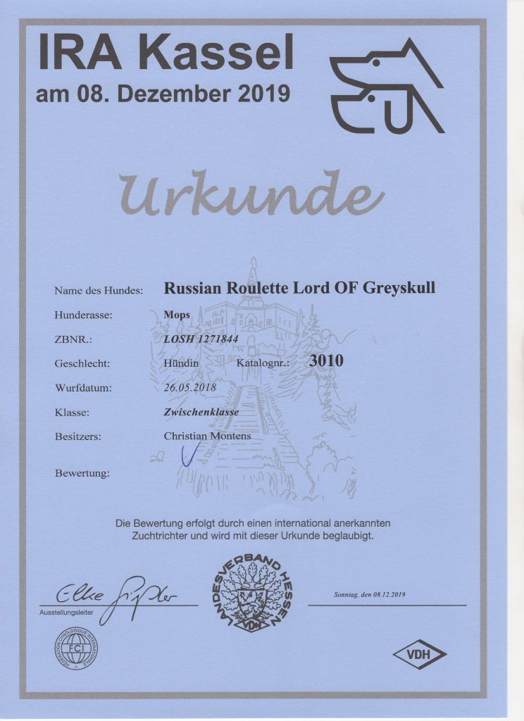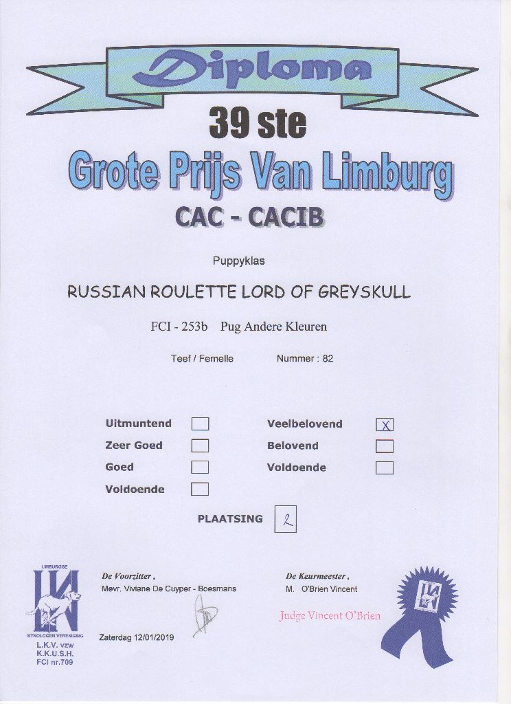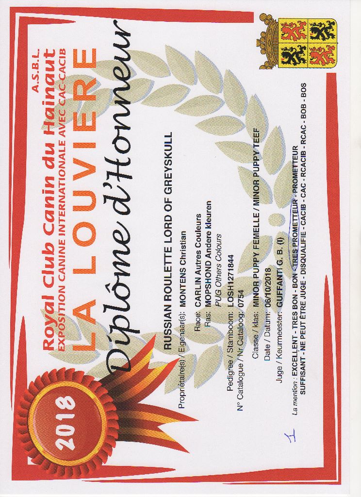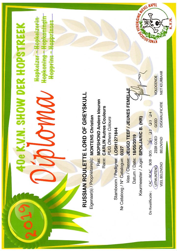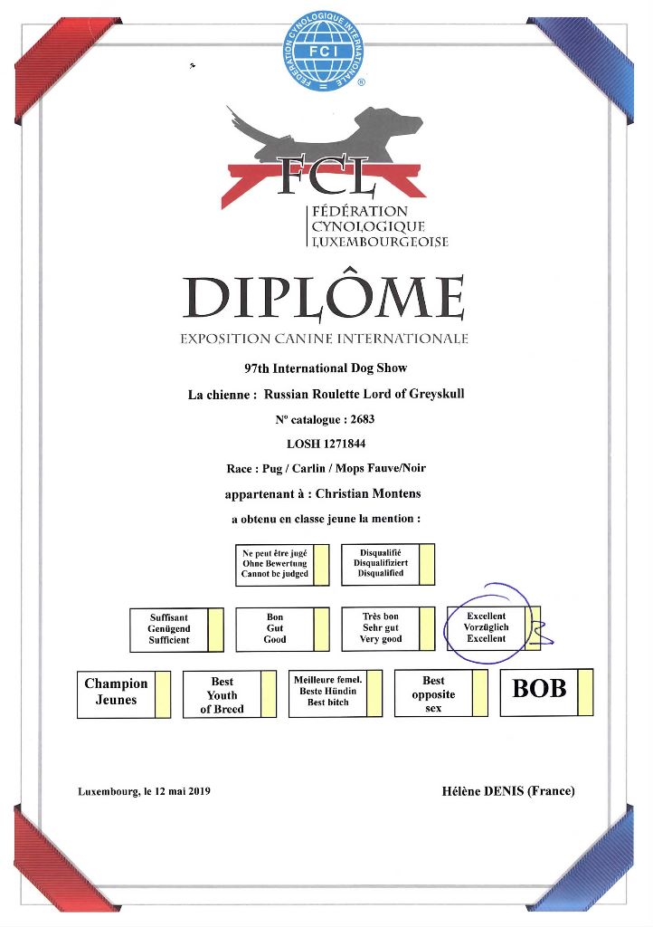 Chien Carlin CH. Russian roulette Lord of Greyskull