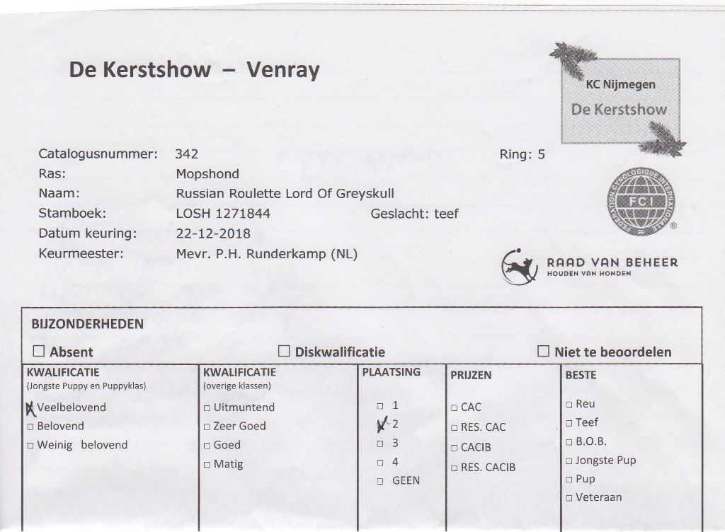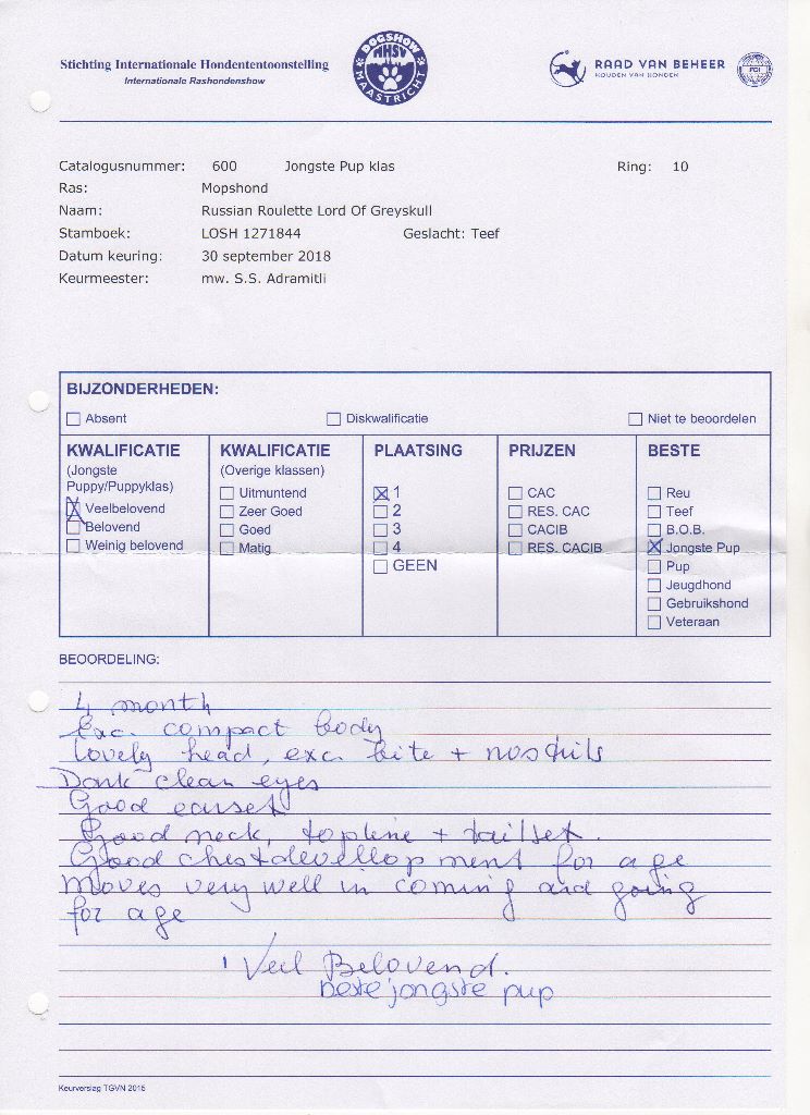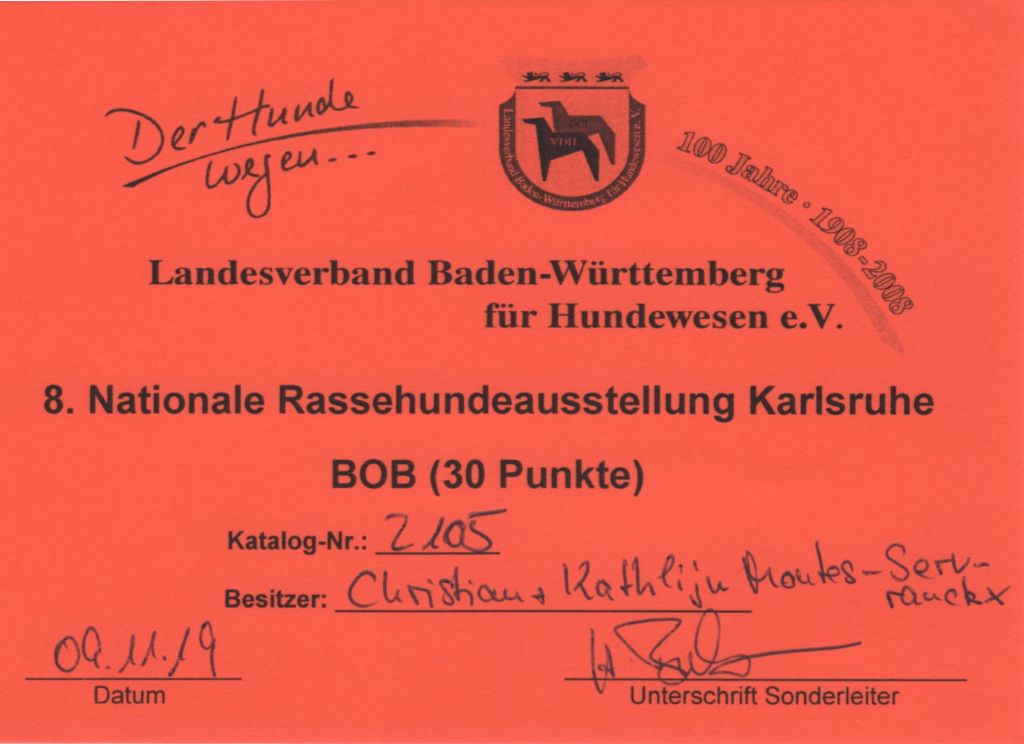- ICB 1st EXELLENT + CAC VDH +CAC VK + CACIB