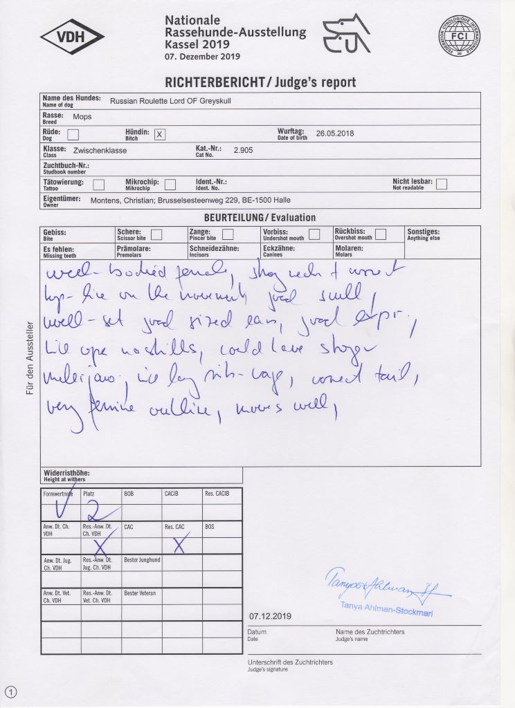Manifestion : EXPO CAC VDH - VK - Juge : Mrs.Tanya Ahlman-Stockmari (FI)