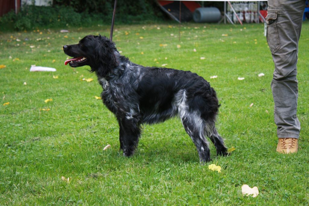 1 an 2 moisChien harmonieux dans son ensemble avec harmonie des angulations. Le dos n?est pas encore bien tendu. Côtes arrondies, poitrine longue. Tête devrait se terminer, le crâne déjà de bonne largeur, bonne attache d?oreille, actuellement le chanfrein est encore un peu pincé. ?il de bonne couleur mais manque un peu d?amour. Dentition complète et correcte. Doigts serrés et de bonne forme. Mouvement régulier, ample et facile. 1er Excellent Meilleur jeune