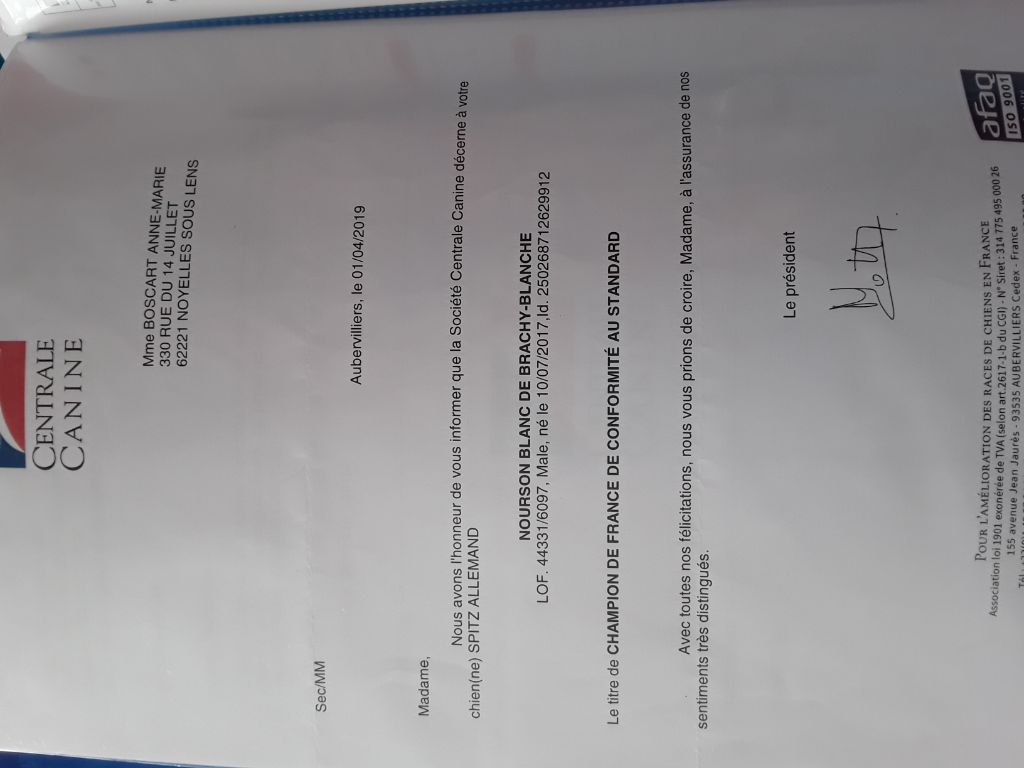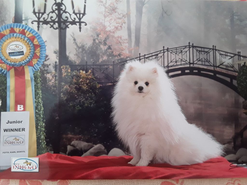 Chien Spitz allemand CH. Nourson blanc de brachy-blanche
