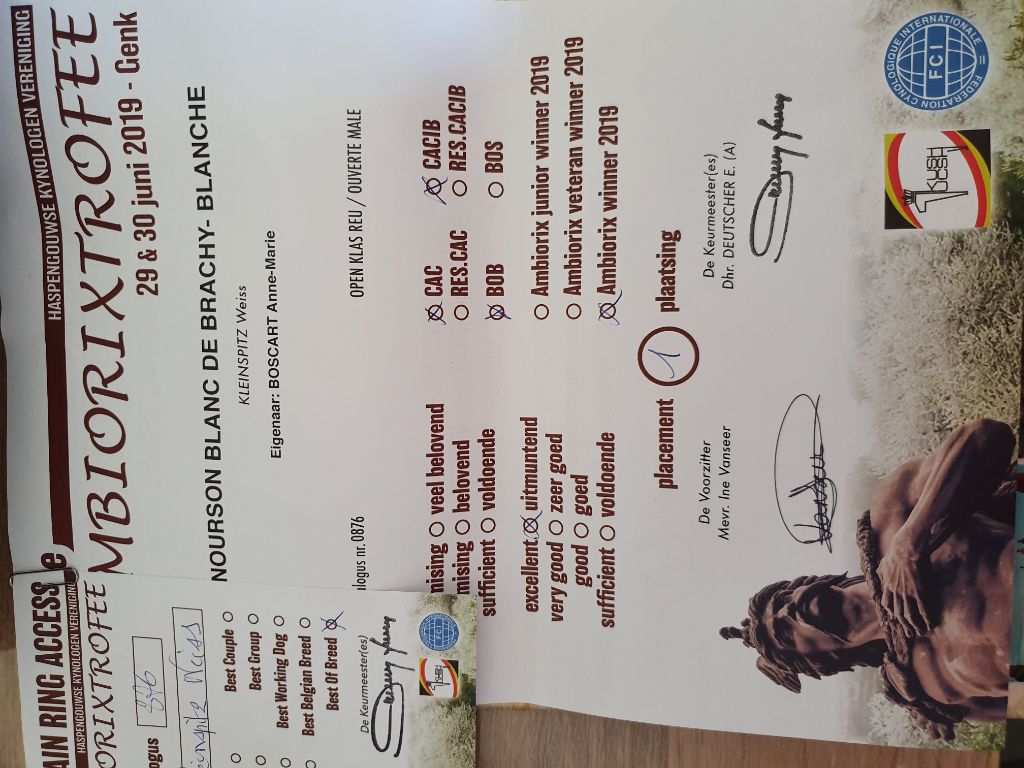 - Premier excellent CACS MEILLEUR DE RACE deuxième place RING D'HONNEUR