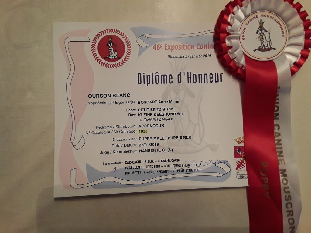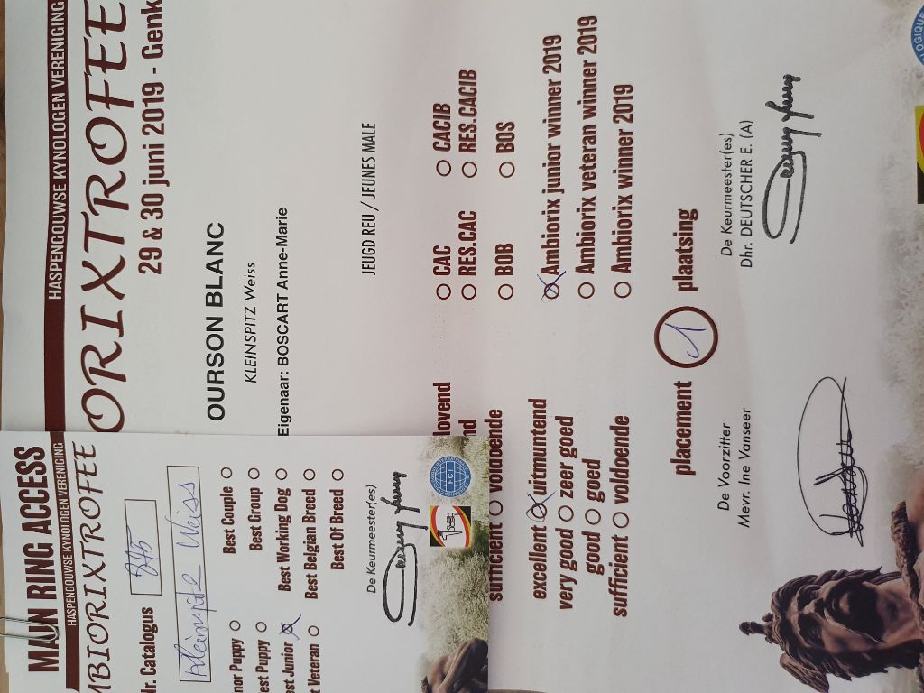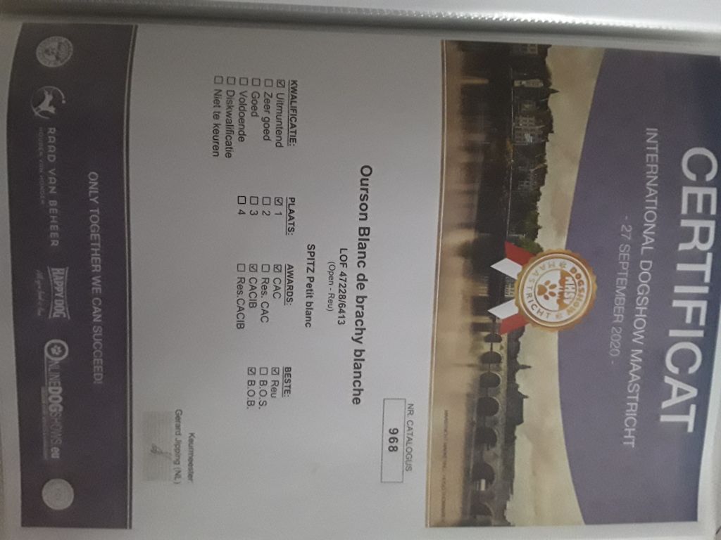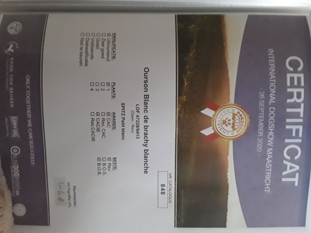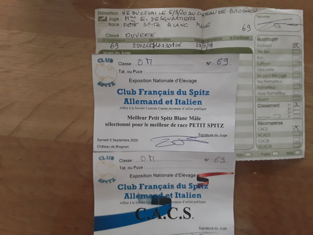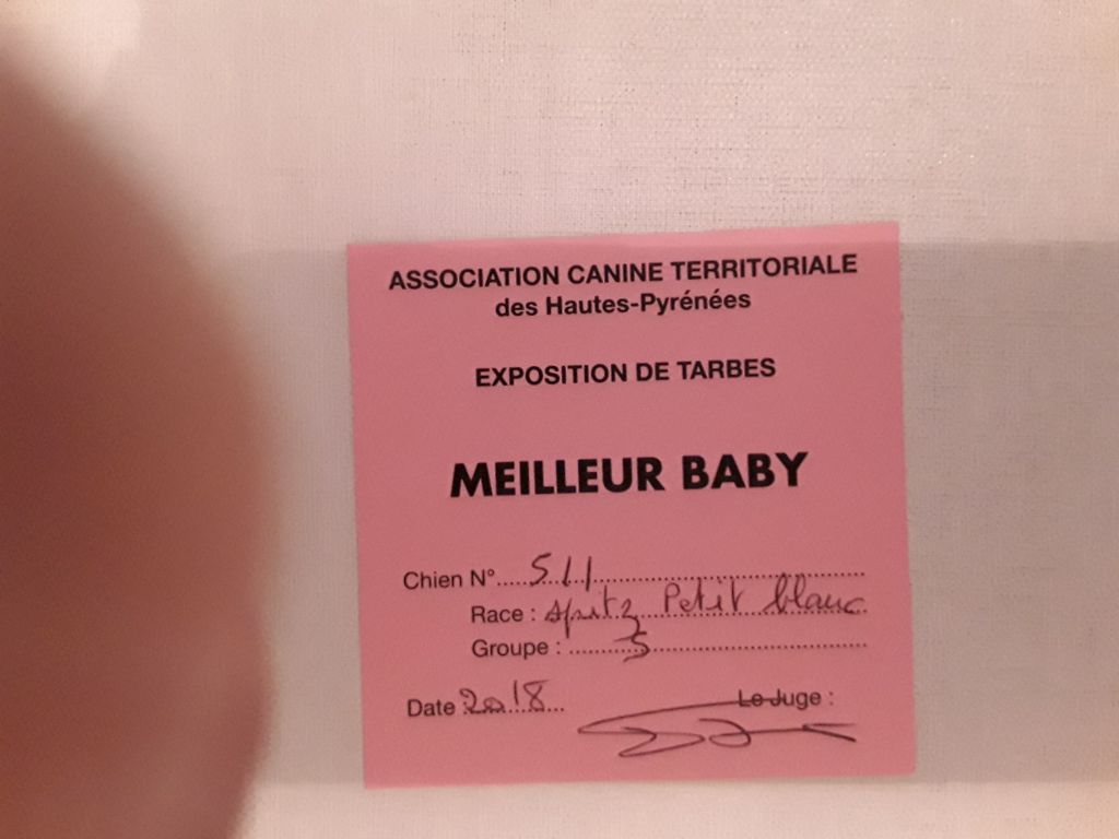 - Premier excellent CACS MEILLEUR DE RACE meilleur petit spitz blanc.devient champ