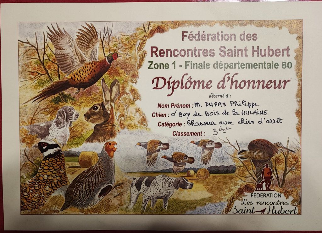 Manifestion : Finale départementale des journées St HUBERT - Juge : Mr Daniel FROMONT