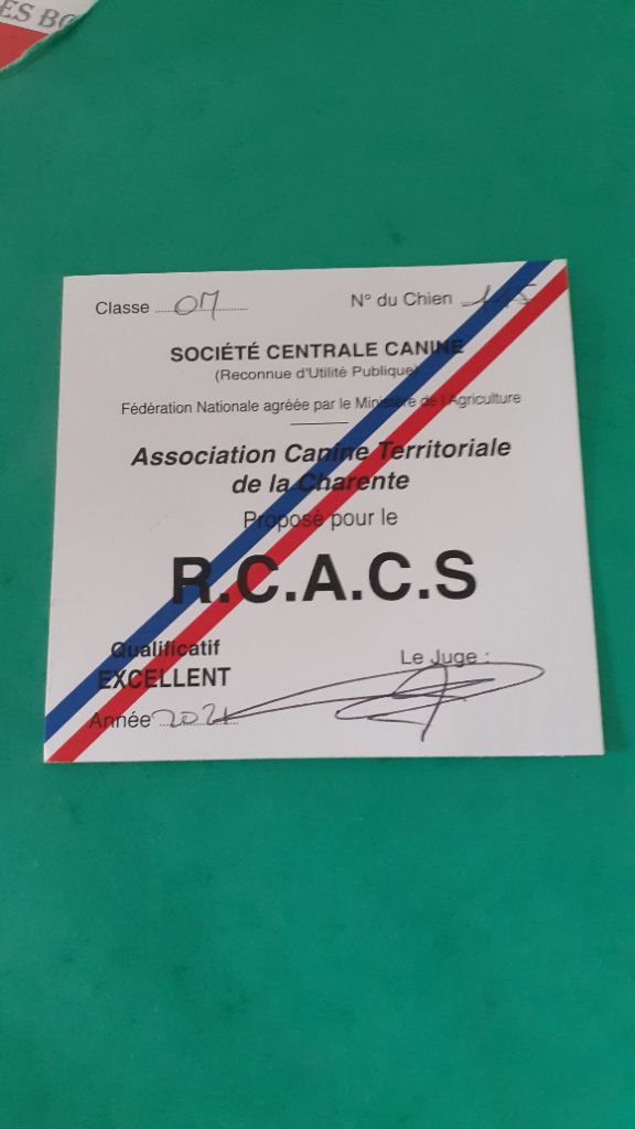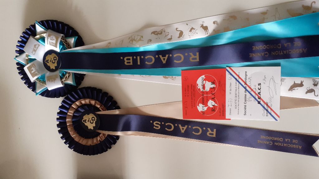 Excellent format et silhouette. Tete très bien construit. Dents correct. Excellent oeil fonce. Excellent poitrail poitrine ligne dessus bien en accord avec la silhouette. Se déplace très bien. Tres bon caractère et présentation
