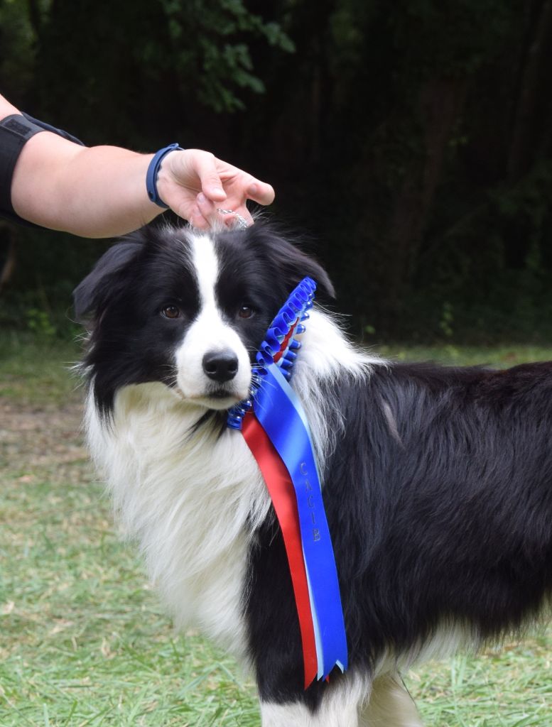 Excellent type et gabarit. Exc ligne dessus et poitrine. Exc épaules, aplombs et angulations arrières. Jolie tête. Belle expression. Mouvement souple et ample.