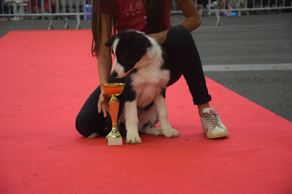 TETE : Dentition cisaille. Très bonne proportion. Exc ?il (forme + couleur). Oreilles bien implantées + TB portées. Très bonne proportion Crâne/Chanfrein.CORP : Exc proportion. Dos déjà assez tendu. TB croupe. Jolie poitrine de bébé. TB aplombs. TB angulations. TB ossature en rapport. Exc mouvement. Allures de bébé.
