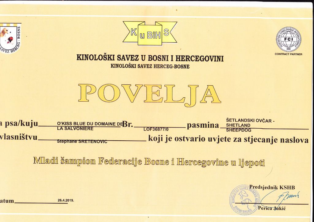 - 1 Exc CAC classe jeune expo Medugorje ( Bosnie) 25.04.2019
