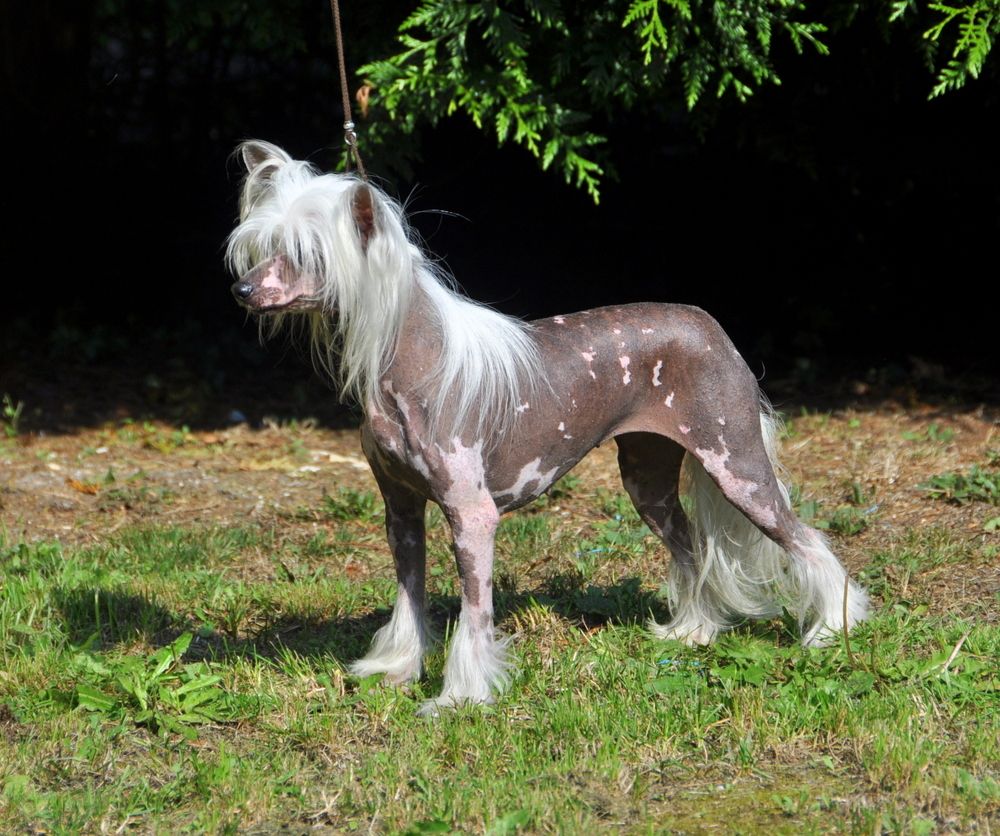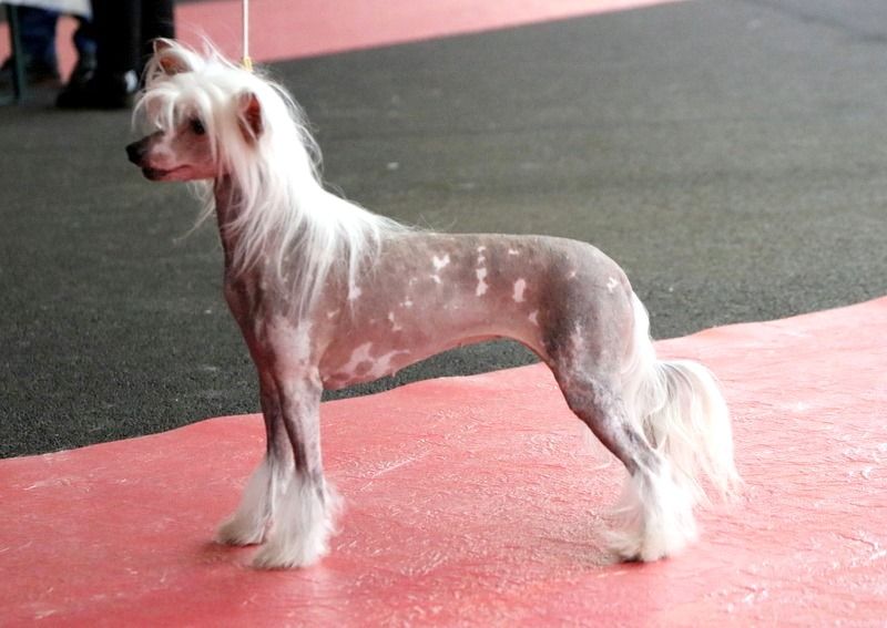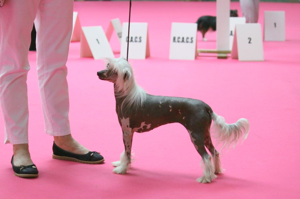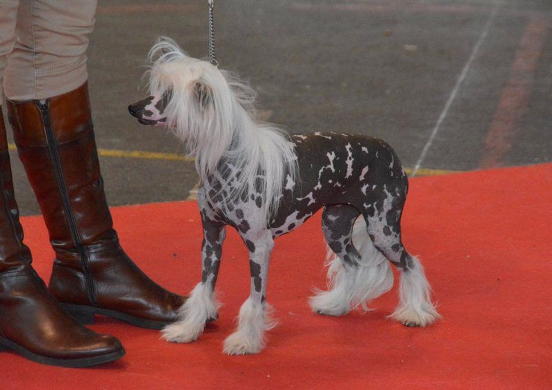 Sujet TB construit, tête TB proportionnée, oeil foncé, exc dent. contruct° corps bien équilibré, exc galbe des côtes, exc attache fouet, ossature, aplombs et pieds, exc qualité de piol et robe, mouvement, caractère et présentation