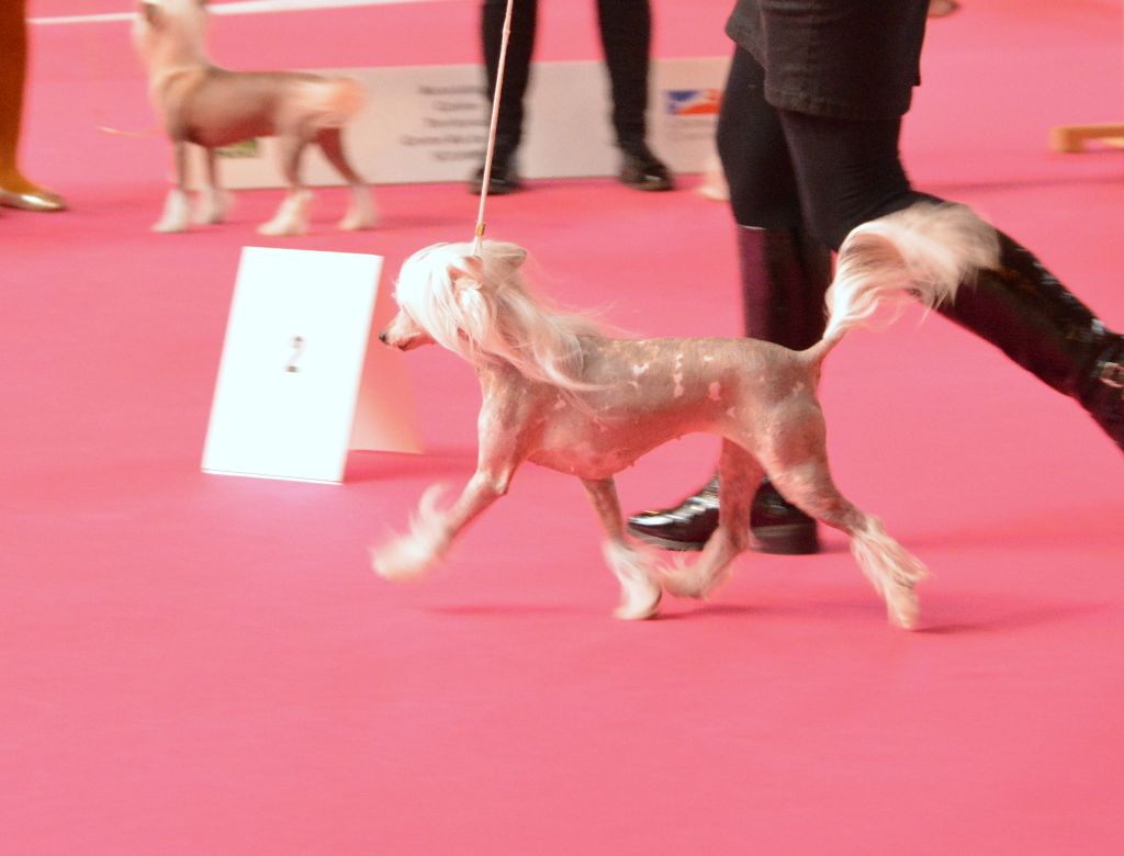 Femelle bien typée, exc proportion, tête et expression, encolure, ligne de dos, poitrine et angulations typiques, comportement calme, mouvement latéral typique avec bonne amplitude